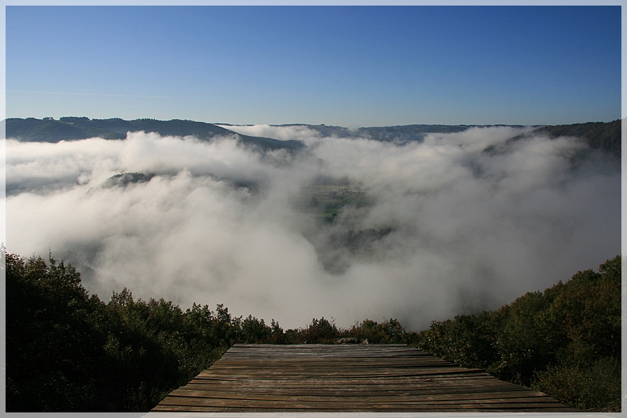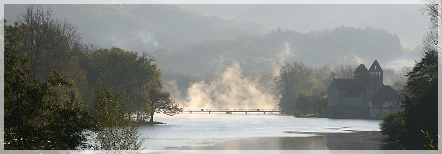 Je reprends la route en direction d’Argentat. Le soleil traverse le brouillard encore présent..